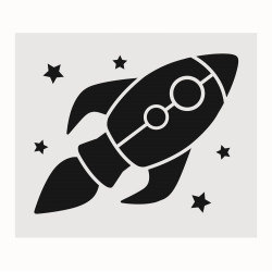 Set mit 6 Schablonen: Astronaut, Rakete, UFO, Space Shuttle, Saturn, Sonnensystem. Die Schablonen können auf Papier, Textilien oder anderen Materialien verwendet werden.