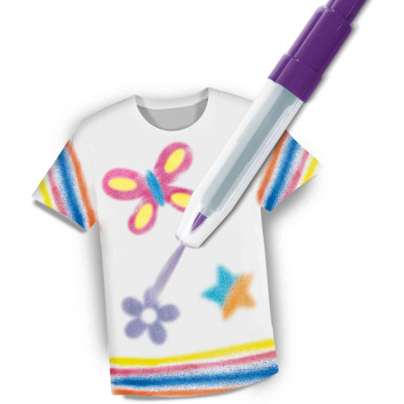 Aufgepasst kleine Fashiondesign-Fans! Mit diesem Set Blow airbrush Pens – Textil von SES Creative ist es kinderleicht, fantastische Designer-Stücke mit atemberaubenden Motiven zu kreieren. Einfach ein Kleidungsstück oder Accessoire aus Stoff, wie z.B. ein T-Shirt oder eine Tasche, auswählen und schon kann’s losgehen. Für den Airbrush-Effekt einfach die durchsichtige Stiftkappe vorne aufstecken, ins Stiftende pusten und zack – ist auf dem Stoff Farbe im trendy Airbrush-Look. Kleiner Tipp: Verschiedene Muster und Farben kombinieren, das sorgt für einen extra Wow-Effekt. Also ran an die einzigartigen Airbrush-Pens, tief Luft holen und fest pusten!